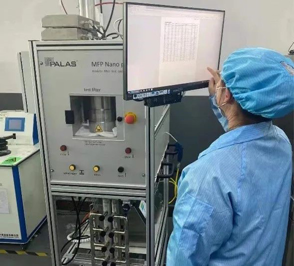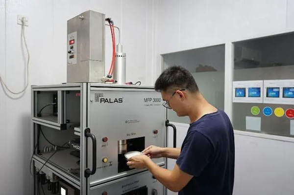 东莞市利韬过滤材料有限公司工作人员正在使用MFP Nano plus 4000 滤材过滤性能测试台