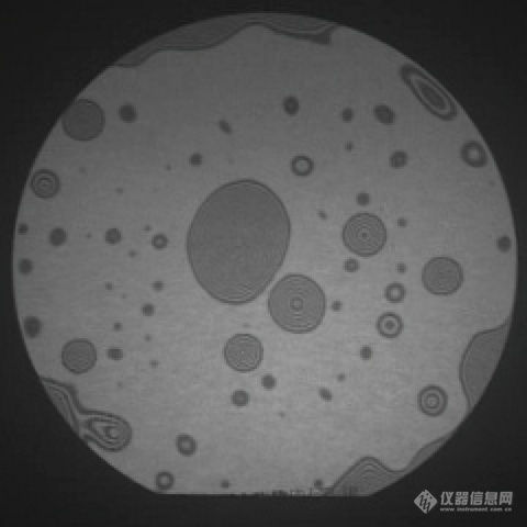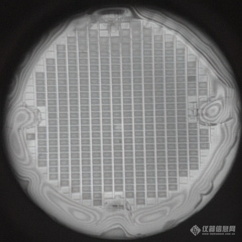 第二张图片显示了预结构化晶片的结合。规则图案由蚀刻腔组成。边界处的干涉图案也表明该区域的粘合不良。